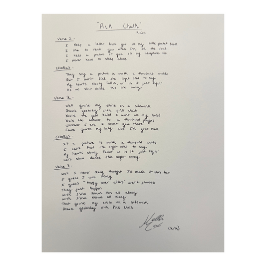 "Pink Chalk" Handwritten Lyrics Sheet