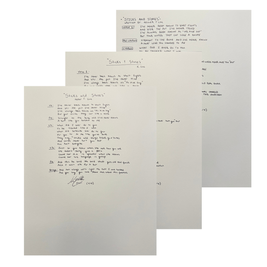 "Sticks and Stones" Handwritten Lyrics Sheet
